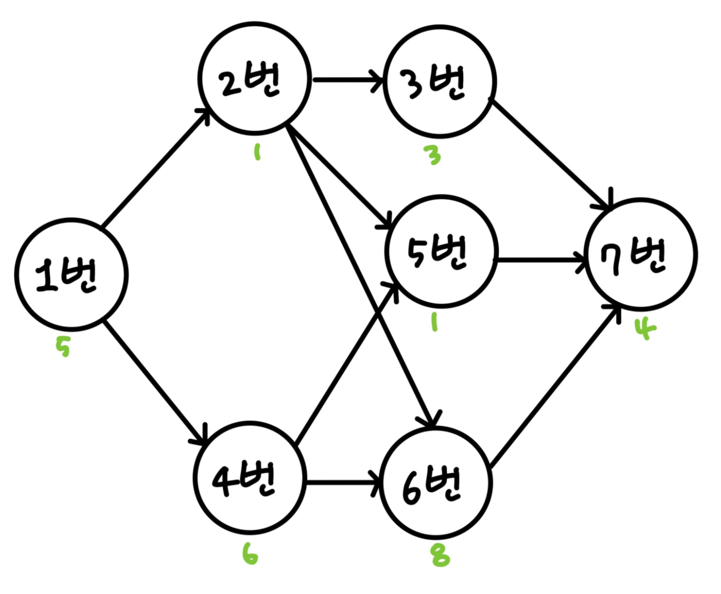 7번 작업 : 4시간, 선행 3 - 3, 5, 6번